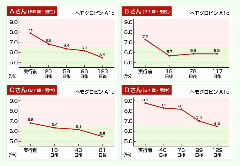 血糖値を正常に戻し、ヘモグロビンA1cの数値を改善させて、